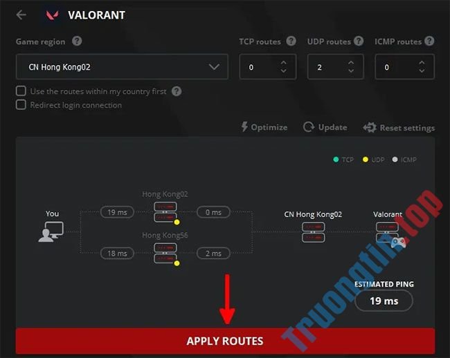 9. Khi bạn hài lòng với ping ước lượng từ các tuyến bạn chọn, hãy nhấp vào “Apply Routes”.