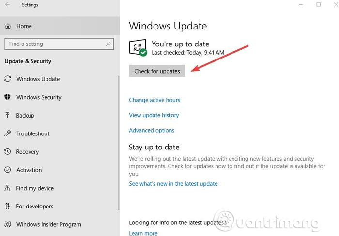 Bước 2 . Click vào Check for updates để Windows kiểm tra các bản cập nhật có sẵn và tải, cài đặt nó khi bạn khởi động lại máy tính.