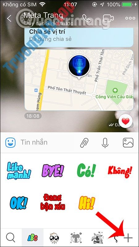 Chúng ta mở giao diện chat trên Zalo rồi nhấn vào biểu tượng sticker . Hiển thị giao diện các sticker bạn đang dùng trên Zalo, bấm vào tượng trưng dấu cộng ở phía dưới bên phải đặt vào kho sticker trên Zalo.