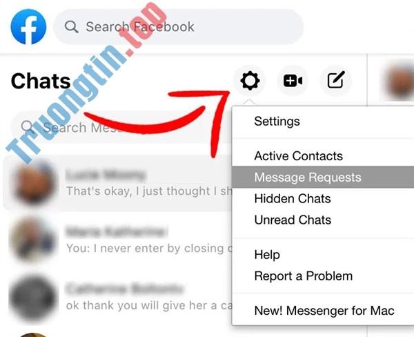 Bấm vào biểu trưng răng cưa (cài đặt) và chọn xem Tin nhắn chờ (Message Requests) .