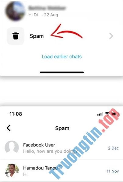 Kéo xuống cuối cùng cửa sổ mục Tin nhắn chờ (Message Requests) và bạn sẽ thấy một đường dẫn nhỏ cũng có thể có thể xem được tin nhắn spam (nếu có).
