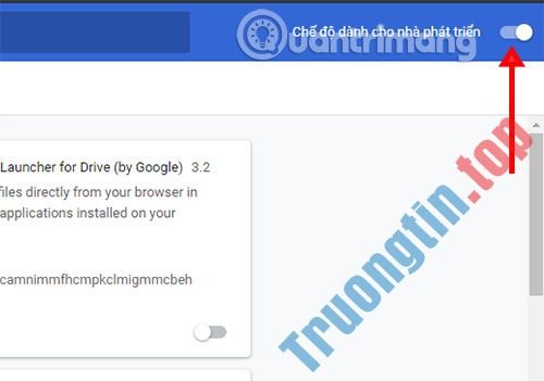Trong giao diện tiện ích Chrome, bạn hãy mở Chế độ dành cho nhà phát triển .