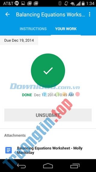 Học sinh có thể theo dõi phần công việc/bài tập trên trang bài tập “Assignment page” chỉ bằng một cú chạm. Giáo viên cũng có thể có thể nhanh chóng xem ai đã và chưa kết thúc bài tập và trực diện đưa ra phản hồi cũng như điểm cho học sinh trong thời gian thực trên Classroom Android .