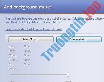Nếu slide được tạo nên để chia sẻ cho gia đình hay bạn bè, bạn có thể sử dụng các file nhạc của riêng mình, tuy nhiên nếu đó là đoạn slide phục vụ cho công việc hoặc học tập, bạn nên lựa chọn những đoạn nhạc do chương trình cung cấp. Khi bạn nhấn vào nút Creat Music , hộp thoại mới sẽ hiện ra cung cấp một vài tùy chọn.