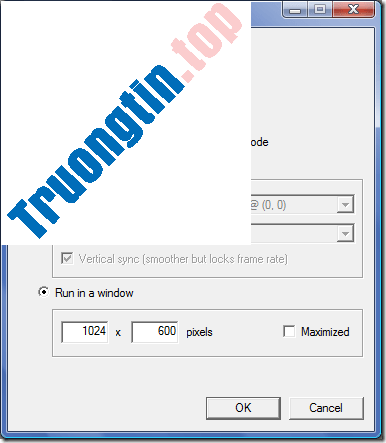 Nếu máy tính của bạn có vấn đề với DirectX, bạn có thể chọn OpenGL thay thế.Dưới Video Settings , bạn có thể chọn nút bên cạnh Full-screen using specific video mode để thay đổi Synthesia đến một độ phân giải thấp hơn.Nếu bạn định sử dụng các ứng dụng khác trong lúc dùng Synthesia, chọn Run in a window , chọn độ phân giải trong hộp hoặc chọn vào Maximized nếu bạn mong muốn cửa sổ mở tối đa. Sau đó nhấn Ok .