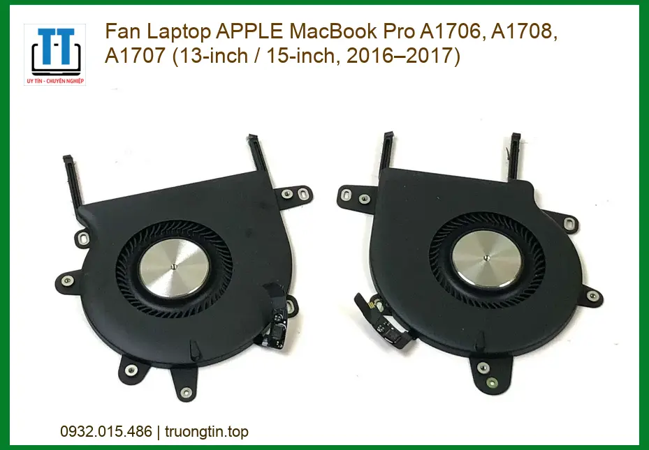 Bạn đang gặp rắc rối với chiếc MacBook Pro yêu quý vì tiếng quạt kêu rè rè khó chịu hay máy thường xuyên bị nóng ran khi làm việc? Fan Laptop APPLE MacBook Pro A1706, A1708, A1707 (13-inch / 15-inch, 2016–2017) chính là giải pháp thay thế hoàn hảo tại Trường Tín để giúp thiết bị của bạn trở lại trạng thái mát mẻ và ổn định nhất.