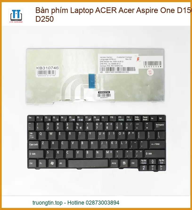 Nếu bạn đang gặp khó khăn trong công việc do bàn phím Laptop Acer Acer Aspire One D150, D250 bị liệt phím, kẹt phím hoặc nhảy chữ liên tục, đừng quá lo lắng. Tại Trường Tín, chúng tôi cung cấp giải pháp thay thế linh kiện chuyên nghiệp, giúp chiếc laptop của bạn trở lại trạng thái vận hành ổn định và chính xác nhất.
